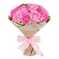 Чудесный, нежный букет для оказания внимания любимым. Чуткость и утонченность букета не сможет оставить равнодушной ни одну представительницу прекрасного пола. В композиции ничего лишнего, в то же время она гармоничная и уравновешенная. 9 ярких розовых роз станут выражением того, насколько вы счастливы находится рядом с человеком, которому предназначен букет.